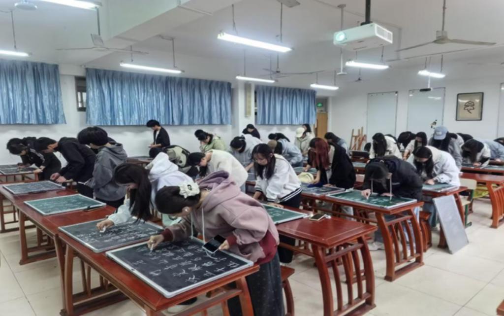 比赛现场气氛热烈而有序。选手们在指定黑板前凝神静气,执笔书写。一方黑板、一支粉笔,成为他们施展才华的天地。在规定时间内,一段段经典诗文自选手笔端流淌而出,构成了一幅幅美观大方、风格各异的板书作品。大家一笔一划规范书写,用心把控字体结构与排版布局,从笔画力度到间架结构,无不体现着对汉字形体美的深刻理解,更展现了严谨专注的书写态度、踏实认真的学习风貌与青春昂扬的精神姿态。